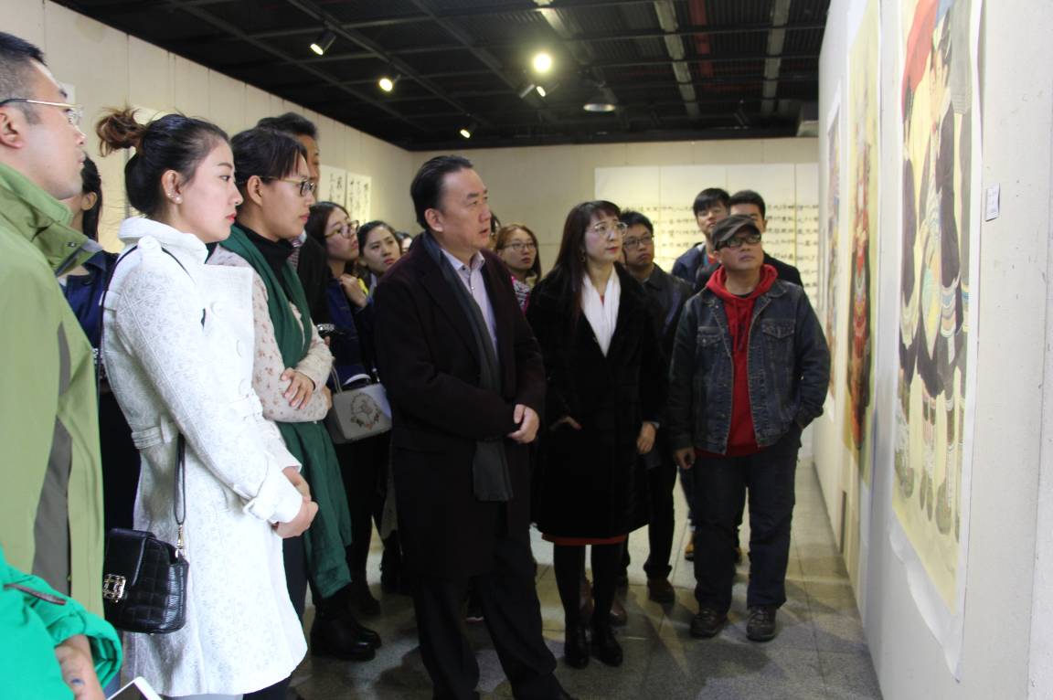 分管研究生工作的公司副经理、研究生导师蔡智教授讲话,重申了此次展览是技能类学术型研究生的毕业展和专业学位艺术硕士研究生第二次中期汇报展,这里展现的作品,或多或少的体现了同学们在学习中国画、书法不同阶段的探索过程,这些探索成果有的是值得赞扬和鼓励,有的则需要调整与改进,但不管如何,探索本身就是学习的过程,是值得肯定的。能够成功举办此次展览离不开导师们的悉心指导和研究生们的积极创作,蔡副经理代表公司对各位研究生导师对公司研究生工作的支持与指导再一次表示衷心的感谢,同时也祝愿同学们在今后的艺术道路上越走越远。