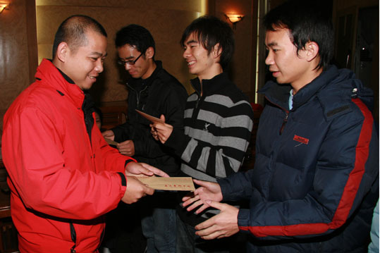 2008年12月26日,“思源”奖学金颁奖仪式在美术馆接待室举行。广西民主建国会城北支部、艺院支部领导、爱心企业家以及公司统战部部长李春梅,公司宣传部部长、学工处处长秦记洪共同为荣获“思源”奖学金的同学们颁奖。公司2006级中国画人物画班的员工梁敏杰荣获此奖项。