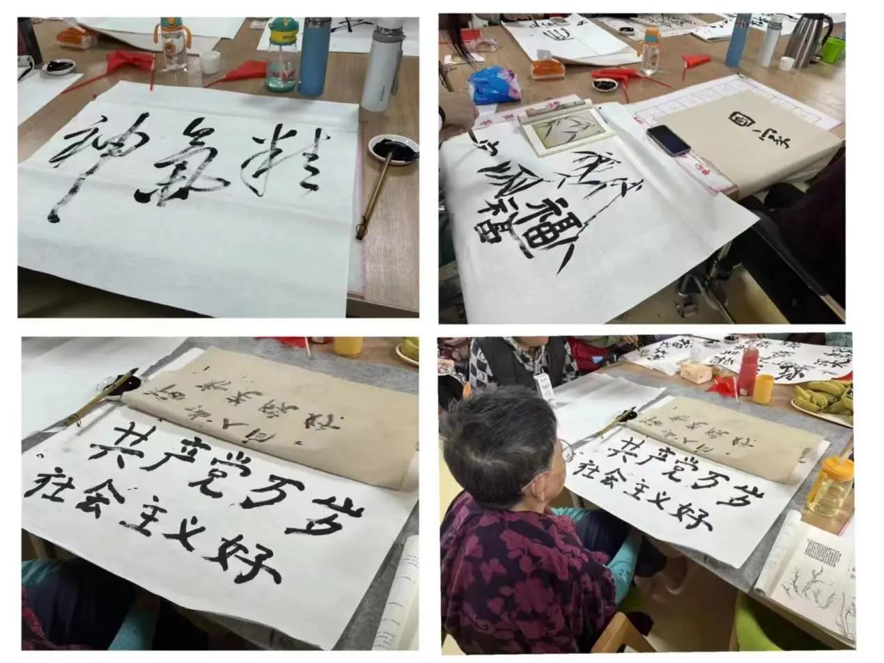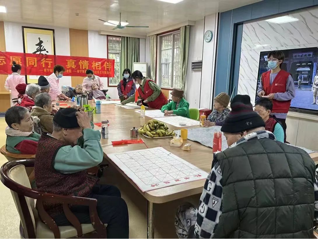志愿者陪老人聊天回忆美好的往事和讨论他们感兴趣的话题,给予他们情感需求,与老人们共同创作,在纸上一笔一画写出他们自己的名字,给他们带去心灵的慰藉。老人们脸上洋溢的笑容就是志愿者辛苦的意义。