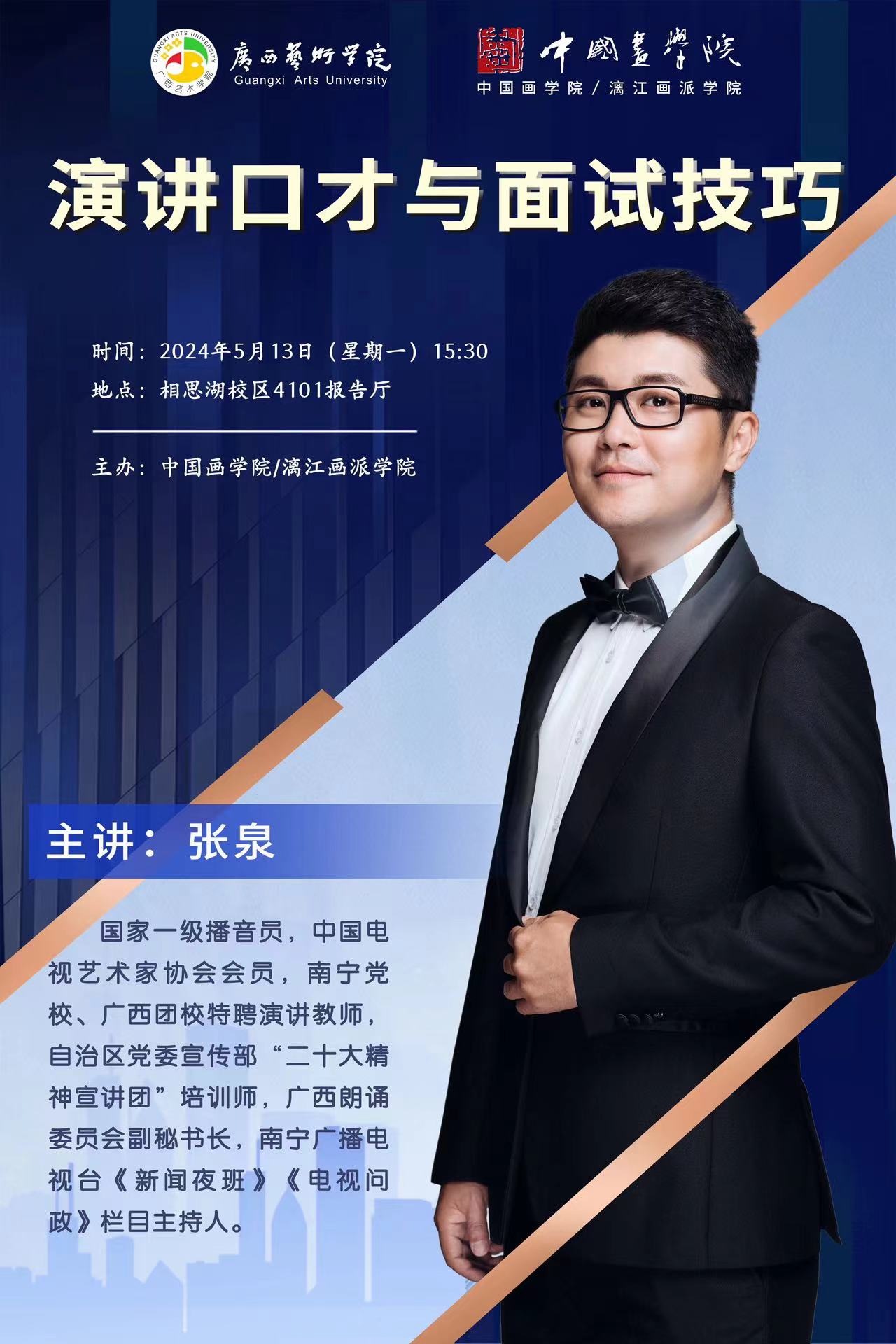 主讲人简介:国家一级播音员,中国电视艺术家协会会员,南宁党校、广西团校特聘演讲教师,自治区党委宣传部“二十大精神宣讲团” 培训师,广西朗诵委员会副秘书长,南宁广播电视台《新闻夜班》《电视问政》栏目主持人。